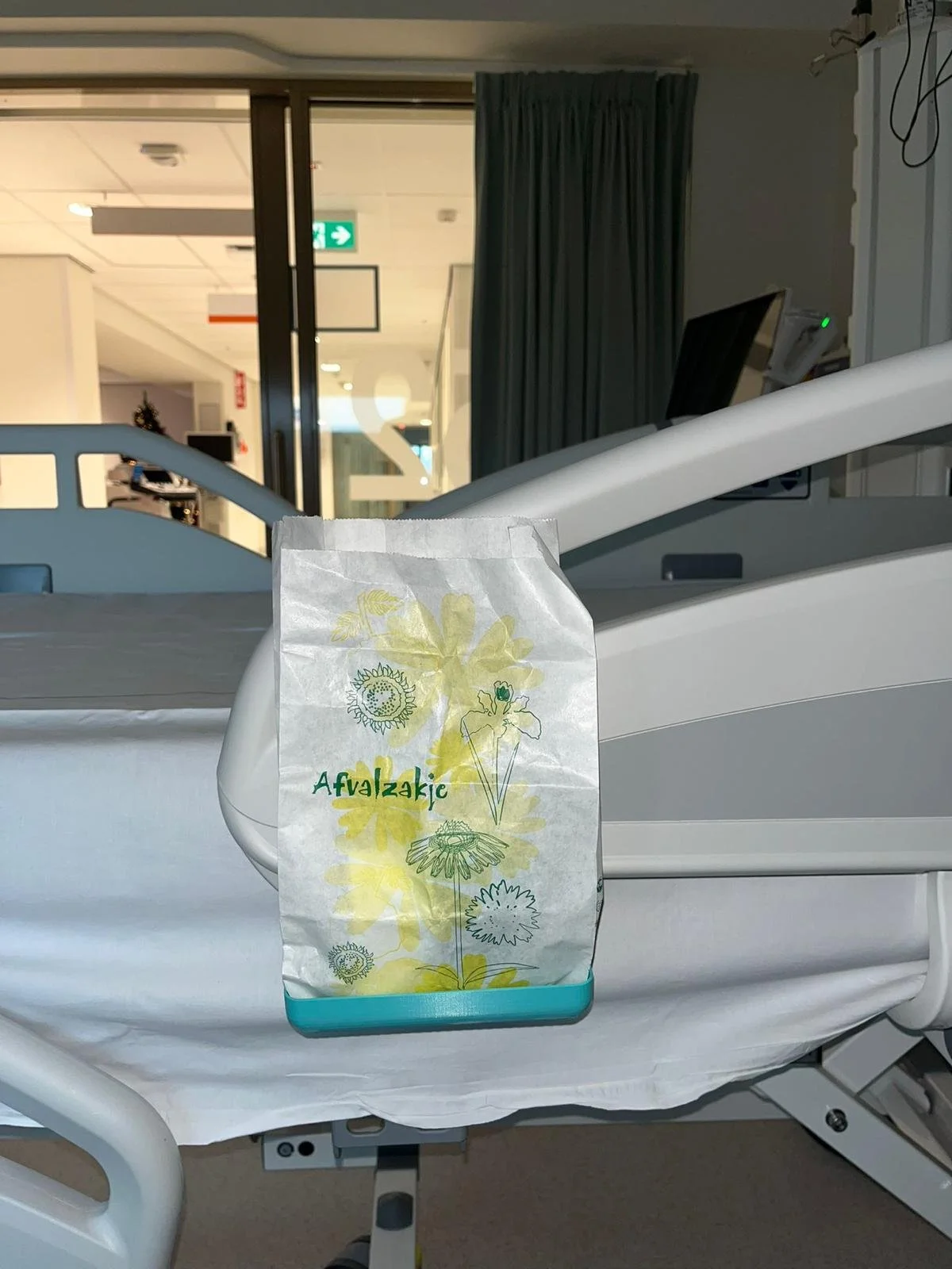 Above are several ideas to solve the problem of waste bags often falling to the floor after being used by patients. The project was based on needs shared by nurses and patients at VU Medical Center and Amsterdam UMC.